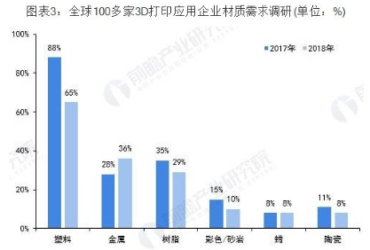 隨著多年的發展,3D打印產業目前已形成基礎技術較成熟、新技術不斷創新的技術體系,材料部分的創新也層出不窮,逐漸成為航空航天、汽車、消費電子、醫療等領域的熱門技術。3D打印材料在3D打印產業中必不可少,占據著3成的份額。