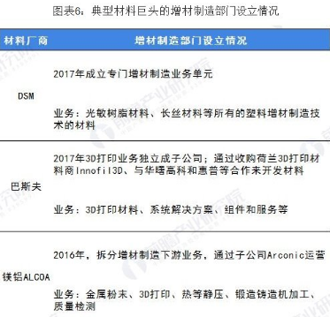 此外,2016年以來全球大型材料制造商成立了專門的3D打印部門,如巴斯夫、杜邦等傳統材料企業紛紛開始布局專用材料領域,說明3D打印的產業應用價值已經得到廣泛認可,隨著商業化生產規模的持續擴大,更具增長彈性的材料端開始發力,尤其是處于產業化應用初期且技術難度較大的金屬專用材料領域。